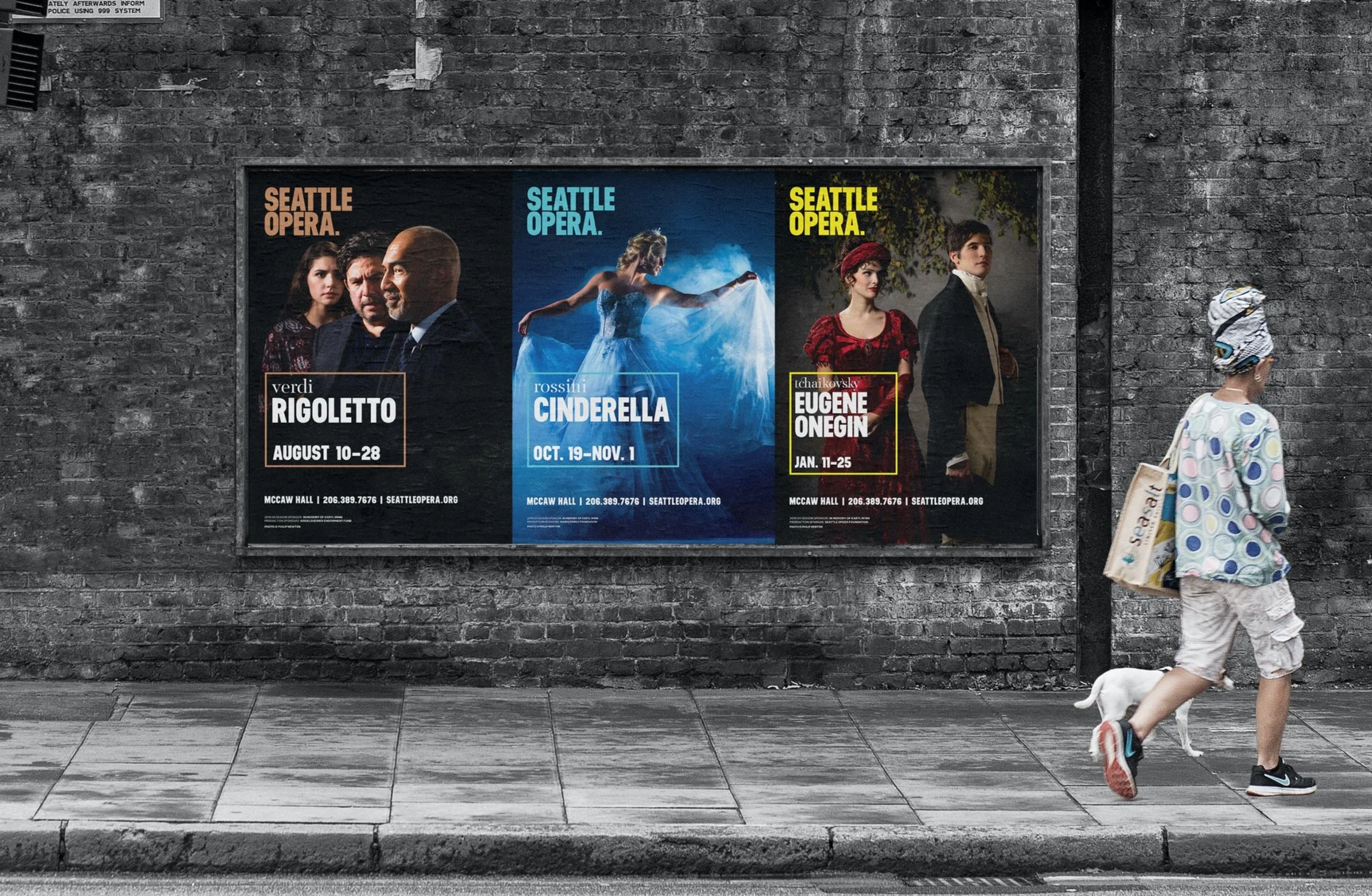 The 2019/20 season communicates and engages with younger audiences around the Seattle area and the subscribers that have been with the opera for years. The season’s visual language is supported by using bold and dramatic colors paired with a singular hero image that captures the essence of a particular production.