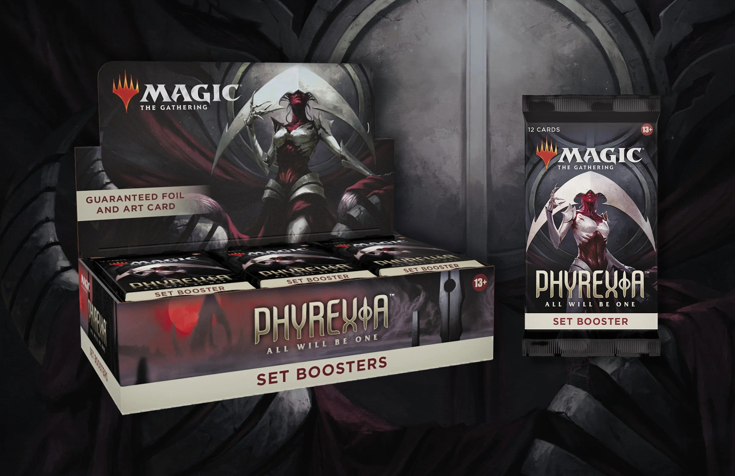 Phyrexia: All Will Be One takes us to the heart of Evil Praetor Elesh Norn’s kingdom on New Phyrexia crafted in her terrifying porcelain vision. This is alien horror in its most uncomfortably elegant and strangely appealing form... the pursuit of perfection. Color blocking this set with its products and key art in bone, blood and oil making it visually cohesive and stand out on shelf.