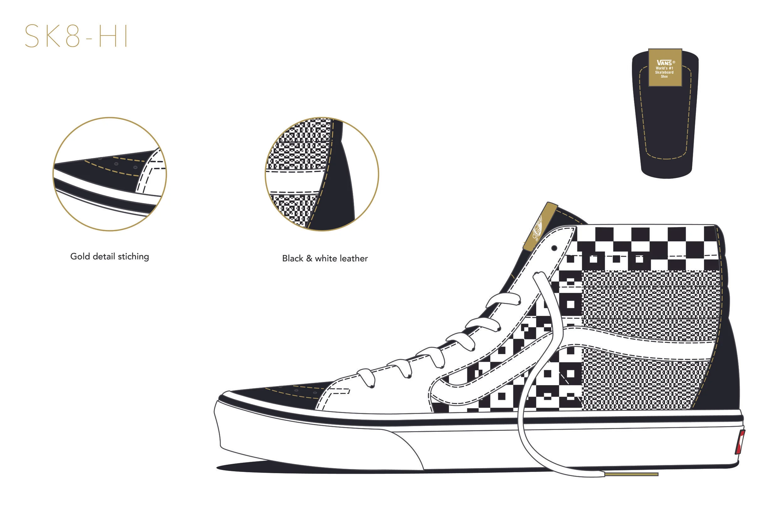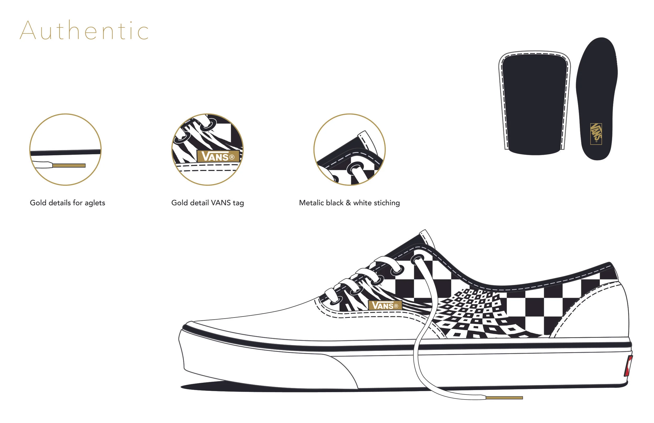 Redfining an icon. This proposed shoe and apparel line is inspired by the Op Art movement in the '60s, which was in full swing when Vans was born. To pay homage to the classic brand in a new way, I took the iconic VANS checkerboard and gave it an optical twist. I applied my concept across shoes, apparel, and print collateral.
